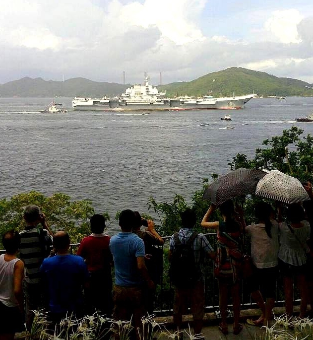 中國第一艘航空母艦「遼寧號」昨早起抵港,會逗留香港5日。昨日早上9時多,「遼寧號」已駛到交椅洲北面的海域停泊,更會於今日、星期日開放給持票的公眾入場參觀。
