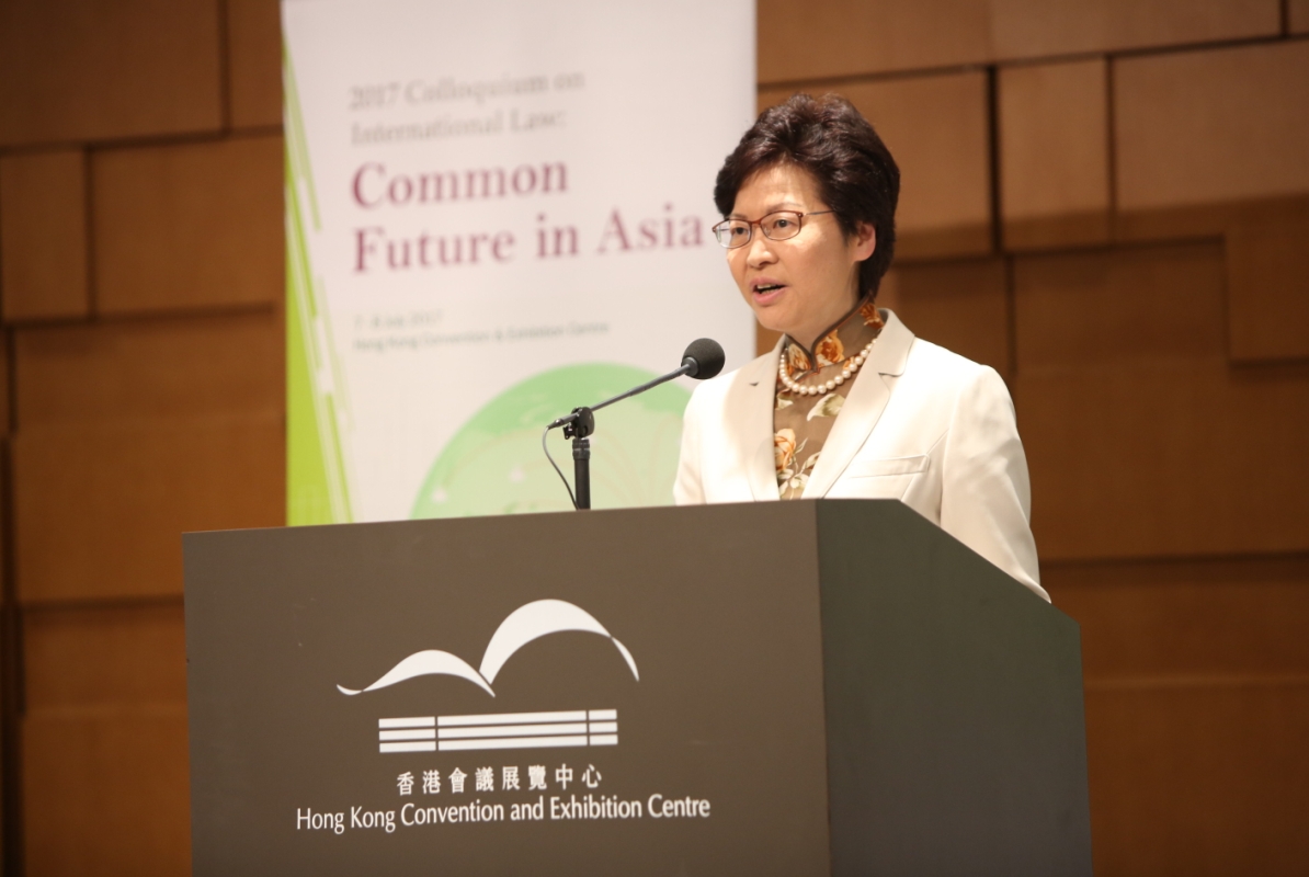 由香港亞洲國際法律研究院和中國國際法學會聯合舉辦的「2017國際法研討會」昨日舉行,多位重量級嘉賓出席。行政長官林鄭月娥於會上致辭表示,「一國兩制」是促使香港特區成立20年來取得成功的最重要政策方針。她稱,利用這一政策帶來獨特優勢,香港成為一個充滿活力的國際都市,在中央政府授權下開展對外交往,與全球多個國家和地區在貿易、投資、金融、航空、文化和法律合作等多個方面鞏固和拓展廣泛聯繫。