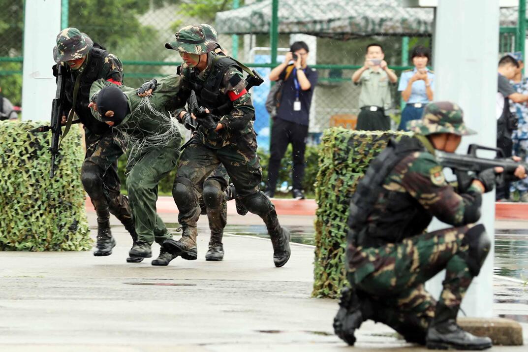 香港市民觀看駐港部隊「獵人戰鬥」表演和反恐演練。
