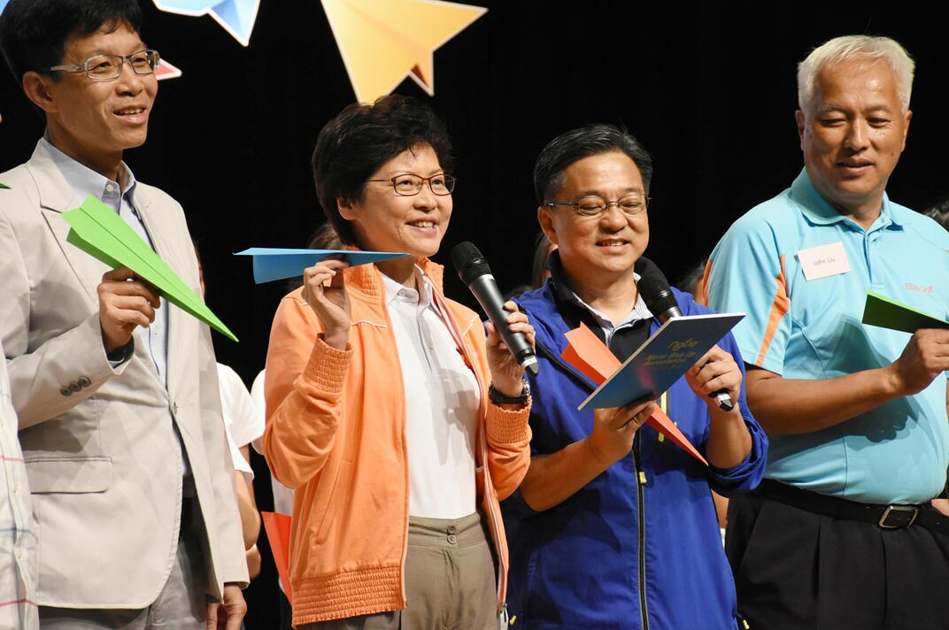 林鄭月娥出席永不放棄同學會,為DSE同學打氣。記者 馮瀚文攝