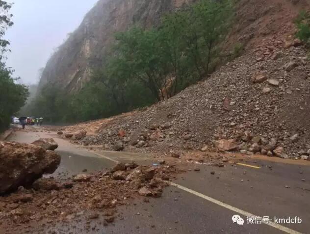 7月7日6時45分路況提示,巧蒙公路K55+100M(蒙姑鎮大彎子路段)發生大面積塌方,導致交通中斷。