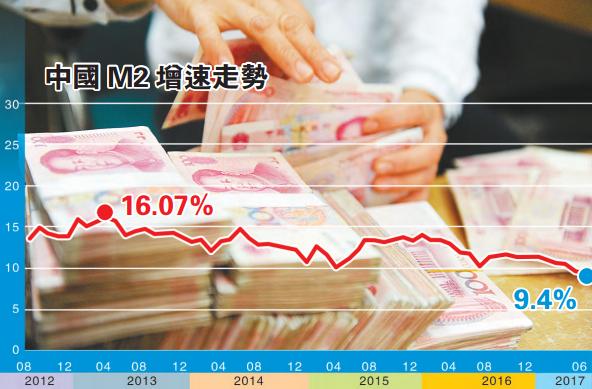 中國人民銀行昨天發布數據顯示,6月末廣義貨幣(M2)增長9.4%,再創新低。專家表示,M2增速創新低,直接原因是金融領域的監管趨嚴,從中能看出中國進一步穩杠杆態勢。未來,金融風險防控仍將被放在首位,貨幣需求主要在經濟結構完善、產業升級換代以及補短板、惠民生等方面,所以下半年M2的增速較上半年會放緩,全年M2增速恐無法達到監管層在年初所預計的12%,可能跌至10%以下。香港商報記者伍敬斌 見習記者施美