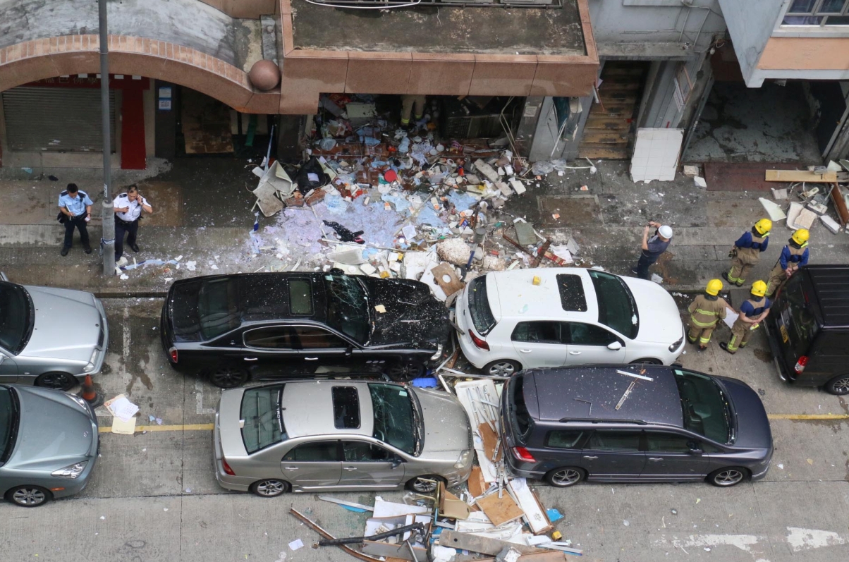 消防九龍西助理消防區長黃炳權表示,處方接報后4分鐘趕到現場,當時已沒有出現明火,茶餐廳面積約5米乘10米,消防出動13輛消防車及7輛救護車,由於爆炸威力極大,單位嚴重損毀。黃又稱,餐廳使用樽裝石油氣,引述職員指是開爐時發生爆炸,確實原因仍需調查,消防同時在現場搬出2個、每個重15公斤的樽裝石油氣樽,氣樽沒有損毀,會聯同機電署調查事故起因,并已通知屋宇署,而餐廳樓上單位毋須疏散。初步不排除石油氣樽泄漏氣體肇禍。