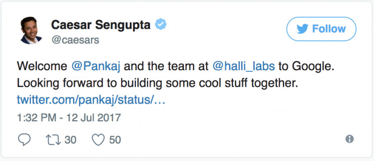 穀歌的產品管理副總裁Caesar Sengupta在今天早些時候也通過Twitter向外界確認了這一消息,不過關於收購的細節以及交易金額尚未提及。