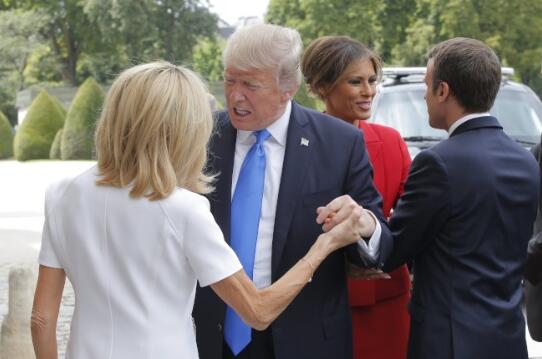海外网7月14日电 美国总统特朗普当地时间13日抵达法国首都巴黎,对法国进行正式访问。特朗普在与法国“第一夫人”布丽吉特·马克龙会面时,大赞她的身材。