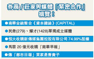 而到今天,資本家買媒體的新聞仍然層出不窮。最近幾年,從恒大收購「新傳媒」74.99%股權,馬雲花20億購買「南華早報」,本地券商民眾金融(279)和耀才證券(1428)成立自家媒體,南華金融整合「資本雜誌」,曹貴子傳買「都市日報」等,都能發現資本偏愛媒體。