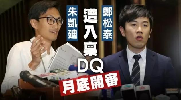 继香港特区政府出面DQ(英文“Disqualify”缩写,意即“被取消资格”)梁颂恒、游蕙祯、梁国雄、刘小丽、罗冠聪及姚松炎之后,再有两名反对派立法会议员被挑战议员资格,随时面临失去议席。早前,有市民委托律师入禀覆核“自决派”议员朱凯廸及“热血公民”议员郑松泰宣誓就职时,违反《基本法》和《宣誓及声明条例》,亦未符合全国人大常委会释法的宣誓条件,要求法庭裁定上述两名议员应否被褫夺议员资格。根据香港司法机构网页显示,有关宣誓覆核案业已排期于7月26日(下周三)早上9时半提讯。