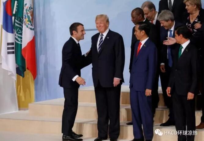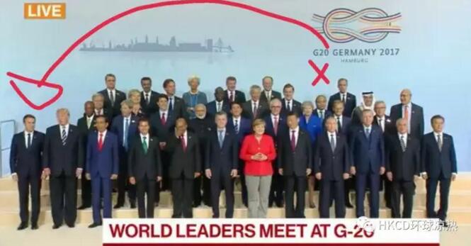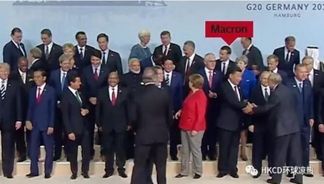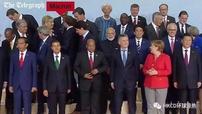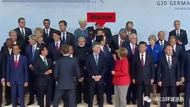 在G20漢堡大合照中除了被媒體調侃的特朗普,其實還有一個人比特朗普更惹眼:從第三排開始越過一排排元首,像導彈一樣克服各種阻力,精准落在特朗普身旁的法國總統馬克龍。