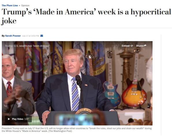 《華盛頓郵報》稱,“美國制造周”是一個“虛偽的笑話”。