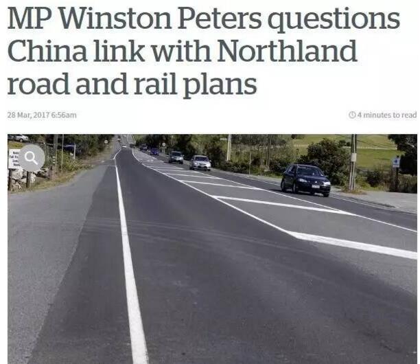 新西蘭媒體稱,彼得斯質疑中國和新西蘭的公路鐵路修建合作計劃。
