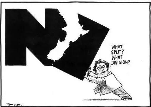 新西蘭媒體刊登的這幅漫畫中,彼得斯領導的優先黨被視為給該國帶來分裂和隔閡。