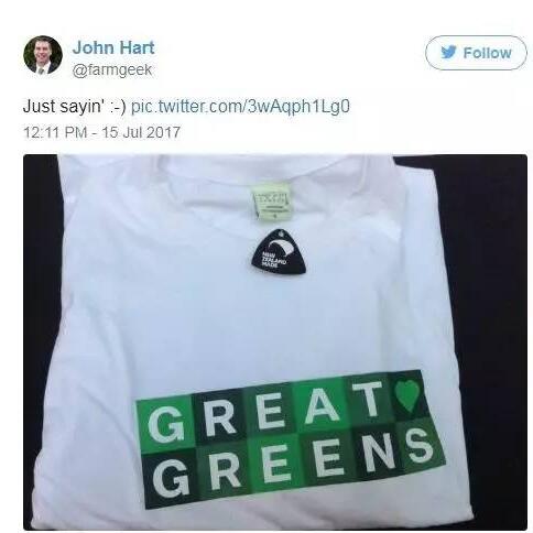 有意思的是,這場網絡群嘲中,另一個政黨、新西蘭綠黨也趕來“補刀”。一位綠黨候選人“跟帖”發圖稱,“我們的T恤衫是新西蘭產的”。