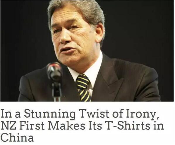 說起來,這事兒算是中國T恤的無辜“躺槍”。新西蘭優先黨(New Zealand First)是一個打著振興本國制造業旗號,有著鮮明“排外”主張的政黨,其掌門人溫斯頓·彼得斯也一直以“排外”著稱,此前曾多次公開宣揚抵制中國產品。