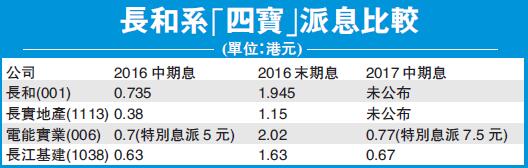 【香港商報訊】記者邱媛媛報道:長和系是無人不知龐大的商業網絡,年近九十的「誠哥」李嘉誠仍堅守其位,或是因為其的影響力及威嚴,長和系成員的派息一直令外界所唱好。若看長和系其中「四寶」長和(001)、長實地產(1113)、電能實業(006)及長江基建(1038),可發現其派息只增未減,或應了兩年前重組時「誠哥」的承諾,稱重組后派息將「有的增」。