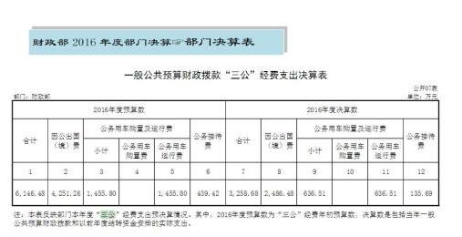 根據財政部此前公布的數據,2016年,中央本級“三公”經費財政撥款支出合計48.25億元,比預算數減少14.85億元,下降23.5%,與2015年相比下降10.2%。