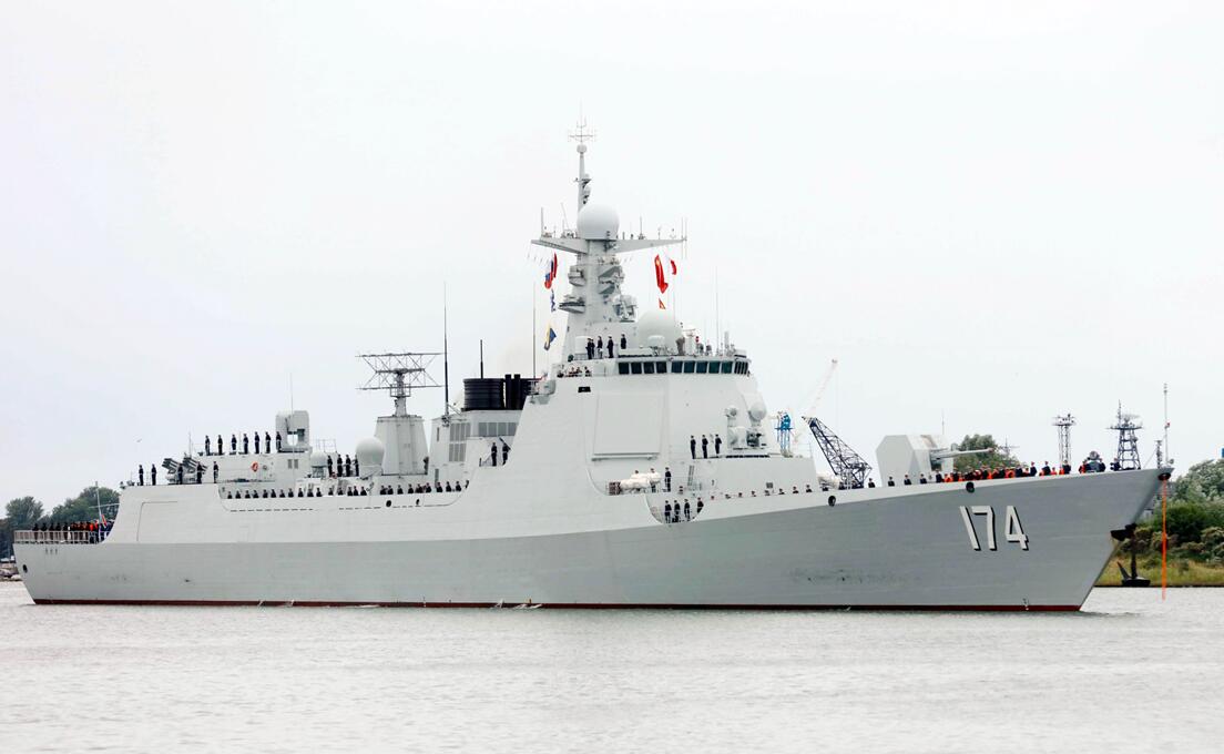 图为中国海军导弹驱逐舰“合肥”舰抵达俄罗斯波罗的斯克军港。中新社