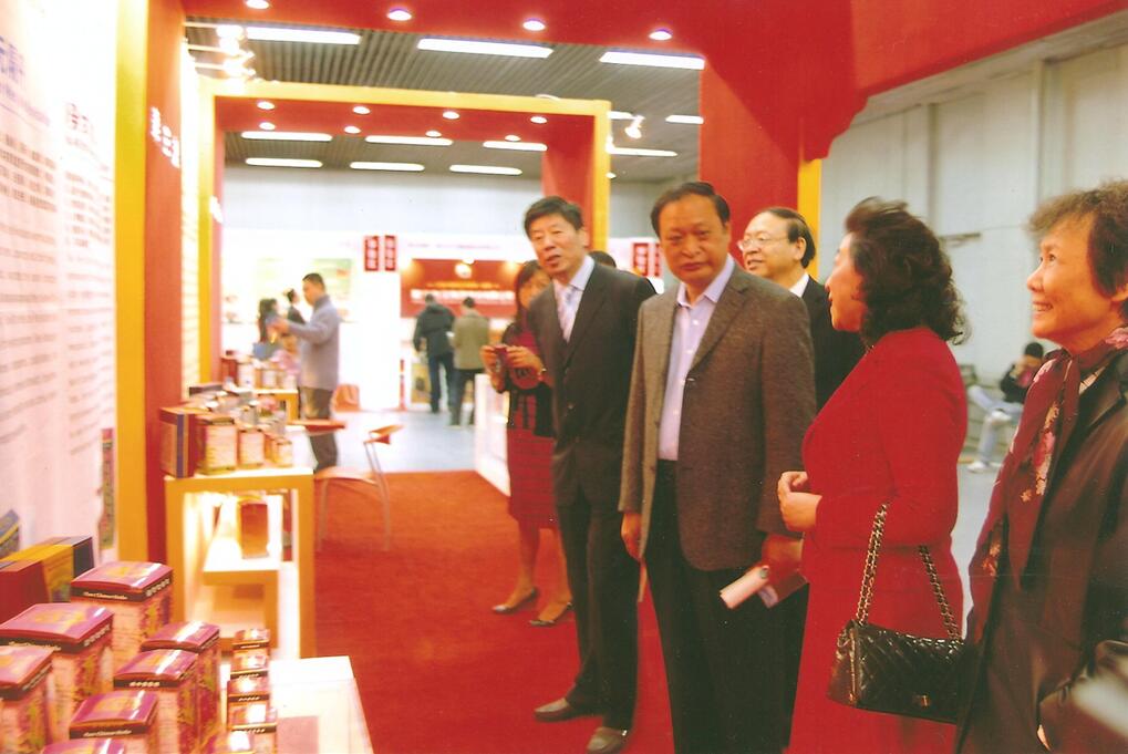 卫生部副部长兼国家中医药管理局局长王国强(前排右二)等参观汉生堂展位。