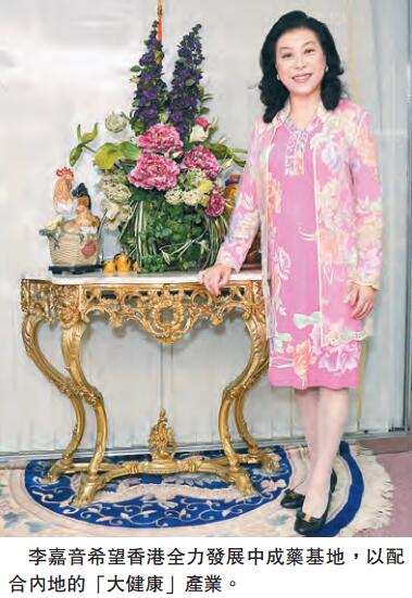 李嘉音希望香港全力發展中成藥,以配合內地的「大健康」產業。
