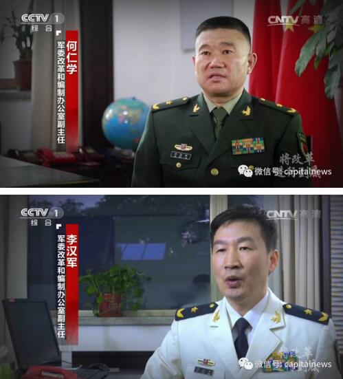 在昨晚播出的大型政論專題片《將改革進行到底》 第七集中,軍委改革和編制辦公室三名副主任一同亮相,他們分別是何仁學、李漢軍和張宇。