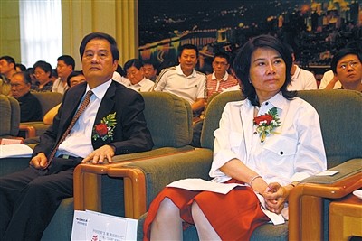 2010年7月15日,时任格力电器董事长朱江洪、格力电器总裁董明珠在北京出席格力电器新技术全国发布活动。图/视觉中国