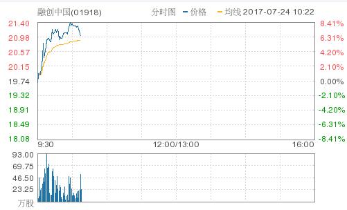 融创中国涨6.13%,报20.95港元,盘中高见21.05港元,再创历史新高。