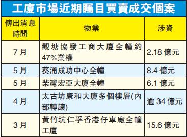 【香港商報网訊】記者曾浩榮報道、實習記者楊竣全報道:隨著政府持續出招壓制樓市需求,部分資金轉戰工廈市場,而且「先翻新,后拆售」已成新趨勢。利嘉閣地產總裁廖偉強預期,受惠投資者持續踴躍入市及拆售,下半年工廈成交價量皆料較上半年急升25%,至2800宗及275億元。