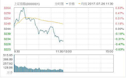 截至午間收盤,滬指跌0.37%報3231點,深成指跌0.78%報10272點。