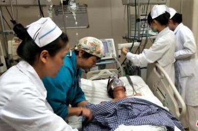 资料图:医护人员为患者插上医疗仪器。徐志雄 摄