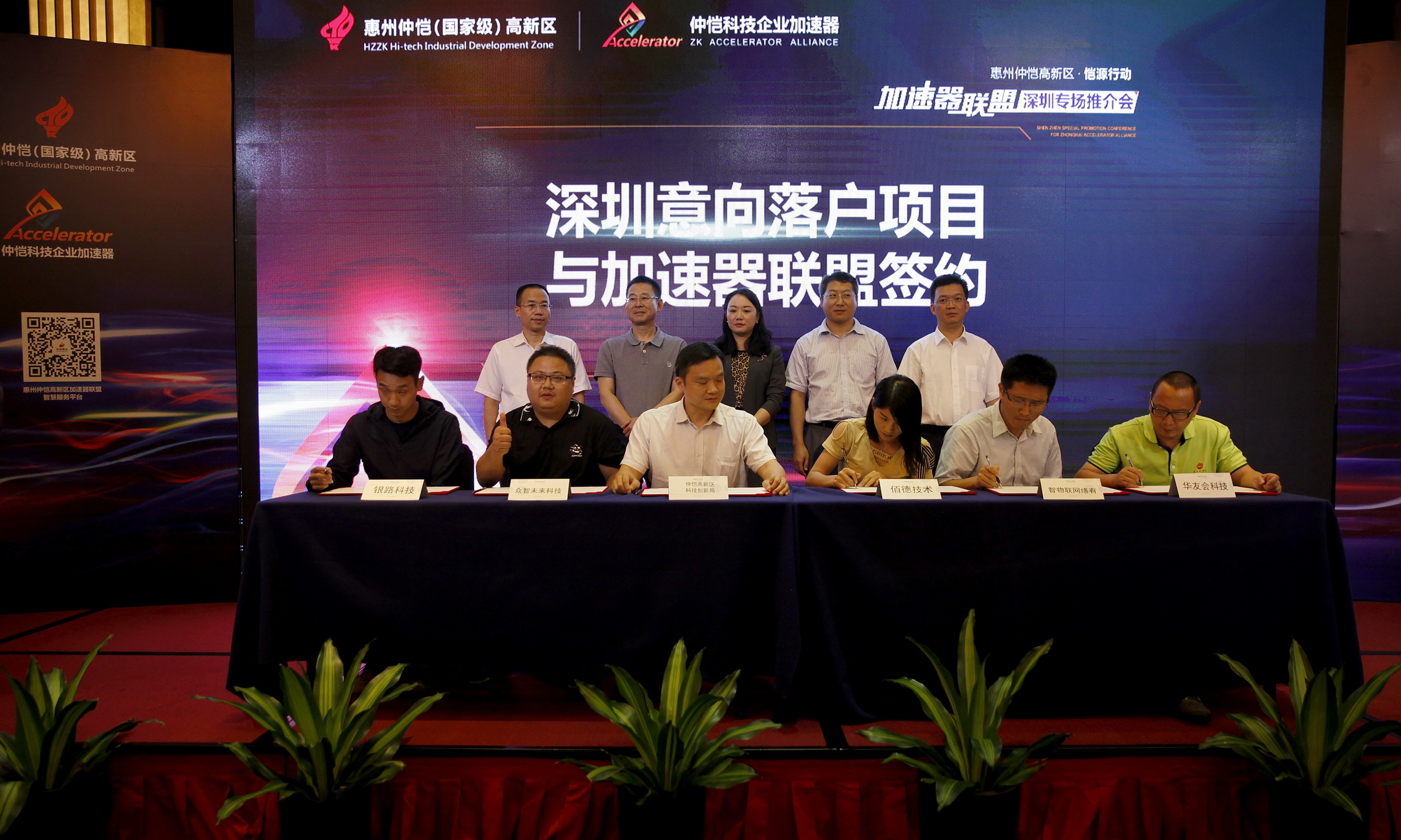 【香港商報網訊】 記者盧偉 通訊員黃怡敏 報道: 現成的廠房資源、優厚的裝修補貼政策、一對一的首席服務官服務,帶著這些加速器品牌, 7月25日,仲愷高新區委書記楊鵬飛和區管委會主任張莉蘭帶隊來到深圳,推介該區加速器聯盟。此次推介吸引了深圳創新創業相關企事業單位、創業團隊、投融資機構代表約200位嘉賓,並有15家深圳企業簽訂落戶協議。