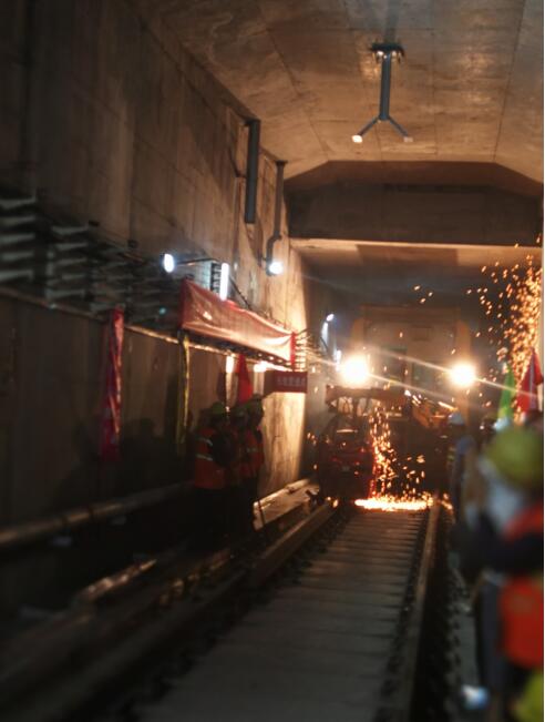 【香港商報網訊】記者黃裕勇報道:7月26日上午,隨著中鐵二局指揮人員的一聲令下,移動焊軌機精准完成對位,伴隨著四處飛濺的電火花,花果山公園至花都廣場區間最後一節軌道完成焊接,廣州地鐵九號線一期宣告全線長軌貫通,為今年年底前開通試運營打下堅實基礎。廣州地鐵宣傳部部長許坤傑表示,廣州地鐵線網裏程將大步邁向400公裏。