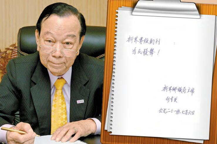 發叔當年為香港商報新界專刊題字,欣然揮筆寫下(右圖)「新界專版創刊 為民發聲!」10個蒼勁有力大字。