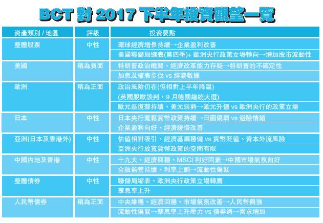 另外,銀聯集團投資總監夏卓華表示,在環球市場經濟增長及預期企業盈利向好下,預料投資者繼續偏好較高風險的資產。而美國聯儲局縮減資產負債表的不確定性,或為環球股市,尤其亞洲市場帶來波動。夏卓華相信,聯儲局於9月至10月期間開始縮減資產負債表,雖然縮表的形式仍未明,但行動本身具有加息的作用,令美元回升,相信屆時港股有機會出現調整。