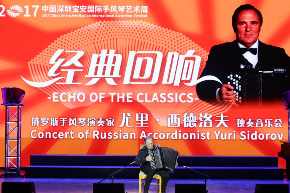 據悉,從7月23日至27日, 5天裏,來自20多個國家的手風琴專家齊聚寶安,舉辦了9場國際一流水平的手風琴音樂會;來自20多個國家和地區及全國各地的1800餘名選手在9個組別的賽場上競相角逐;更有2260位手風琴愛好者共同拉響《春天的故事》,創造了新的吉尼斯世界記錄,在國際手風琴發展史上留下濃墨重彩的一筆。7月24日晚,阿根廷國寶級班多鈕手風琴演奏家瓦特爾·裏奧斯、中國青年手風琴演奏家譚家亮在寶安區西鄉樂穀為觀眾演奏了多首經典曲目。當晚的演出也是世界級手風琴大師瓦特爾·裏奧斯的中國首演。7月25日晚,“經典回響”俄羅斯手風琴演奏家尤裏·西德洛夫獨奏音樂會在西鄉樂穀劇場上演。尤裏·西德洛夫是俄羅斯著名巴揚演奏家,獨奏音樂會演出已有300多場,而當晚音樂會是這位世界級手風琴大師在中國的首次演出。 26日晚,“魅力之音”俄羅斯青年手風琴演奏家亞曆山大·博耶魯耶夫和安娜·科雷施塔列娃音樂會又在西鄉樂穀舉行,再次給市民帶來驚喜。