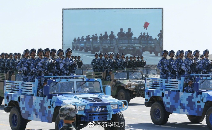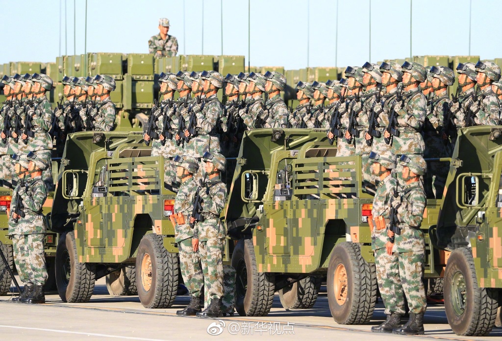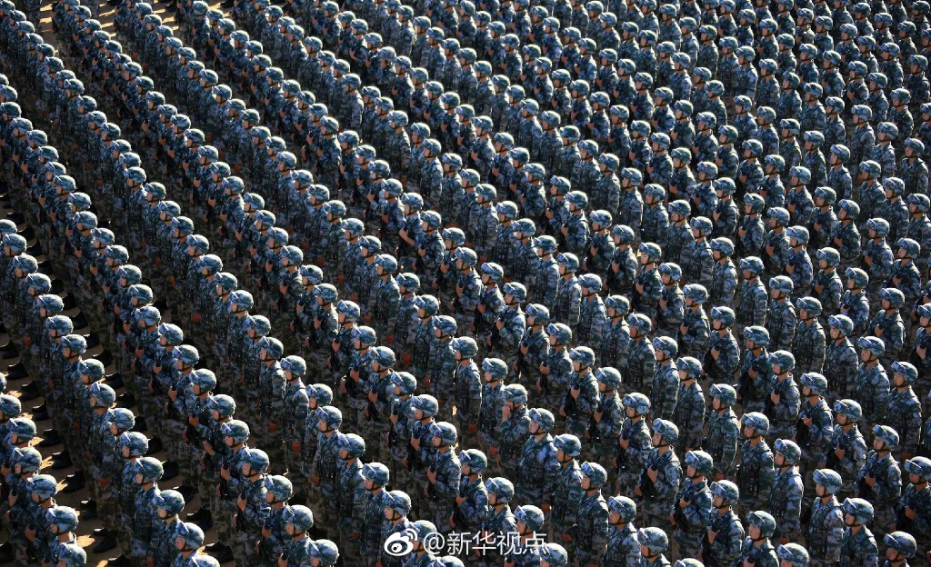 今天接受檢閱的12000名官兵、600餘台(套)裝備,將組成1個護旗方隊、27個地面方隊和9個人員方隊;陸海空三軍航空兵100多架戰機編成1個紀念標識梯隊、1個空中突擊梯隊和6個空中梯隊,從東北、華北6個機場起飛。