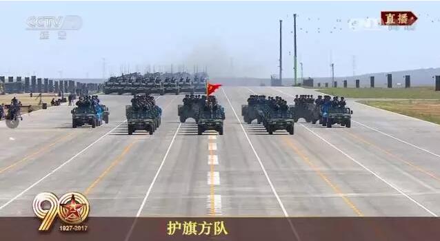 高亢嘹亮的檢閱號角響起,一輛野戰檢閱車向著受閱部隊緩緩駛去,習主席神采奕奕站在檢閱車中央。
