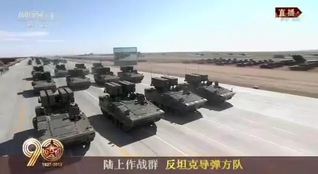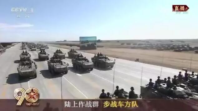 步戰車方隊由04A履帶式步戰車和08式輪式步戰車混合編成,領隊為趙宇少將。作為機械化、信息化複合式發展的陸上作戰代表性裝備,兩款新型步戰車,標志著陸上機動攻防能力的整體躍升。