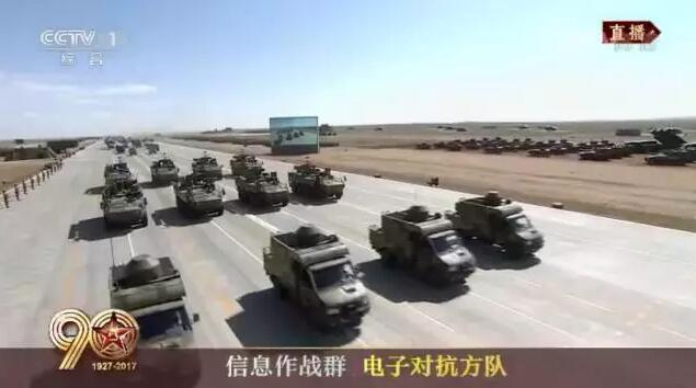 電子對抗方隊,由雷達幹擾車和通信偵察幹擾車組成,領隊為吳亞非少將。電子對抗已經成為現代戰爭中的重要手段。新型電子裝備列裝部隊,使我軍電子對抗能力獲得長足發展。