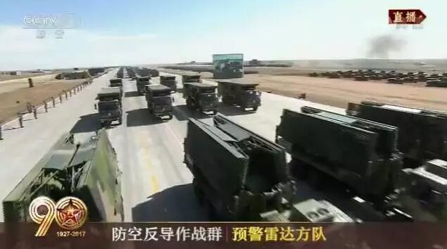 預警雷達方隊,領隊為孟憲章少將。受閱雷達裝備具有高機動、高性能、高可靠的特點,作為國家空天安全的守望者,堅守在空防體系的戰略前哨。
