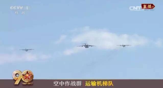運輸機梯隊由1架運-20和2架運-9運輸機組成。運-20是我國自主研發的新一代軍用大型運輸機,具有航程遠、載重大、速度快等特點。運-9是我國國產中型戰術運輸機。大型運輸機技術的突破,推動了我軍遠程投送能力的跨越式發展。