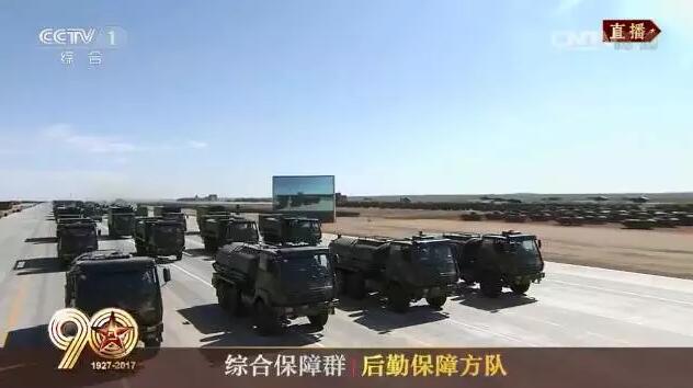 由信息通信保障方隊、工程防化保障方隊、後勤保障方隊、裝備保障方隊組成的綜合保障群接受檢閱。
