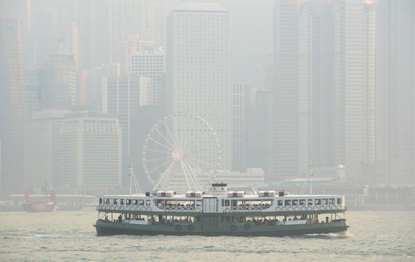 受兩個吹襲台灣風暴下沉氣流影響,本港空氣污染嚴重,由九龍南望港島中區,可見灰蒙蒙一片。記者崔俊良攝
