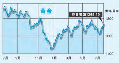 除因美元下跌推升黃金外,朝鮮再度試射飛彈,引發了不確定性,交易員因而尋求避險,也拉動了黃金價格,周五收市報1270美元,連續上升三個星期。黃金近來似乎有意上漲,美國公布的每項數據及國際的消息都被解讀為利好黃金,利淡美元。筆者認為金價將再度測試1300美元阻力。