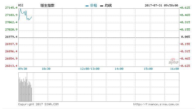 7月27日消息,上周五,欧美股市表现整体偏软,原油和黄金出现上涨;市场进入超级数据周,既有焦点事件如美国大小非农数据,又有英国央行利率决议,市场主要关注其是否追随美联储的步伐。今日开盘,港股恒指高开0.26%,报27048点,重返27000点;国企指数涨0.29%,报10787.55点;红筹指数涨0.07%,报4235.27点。盘前交易14亿。