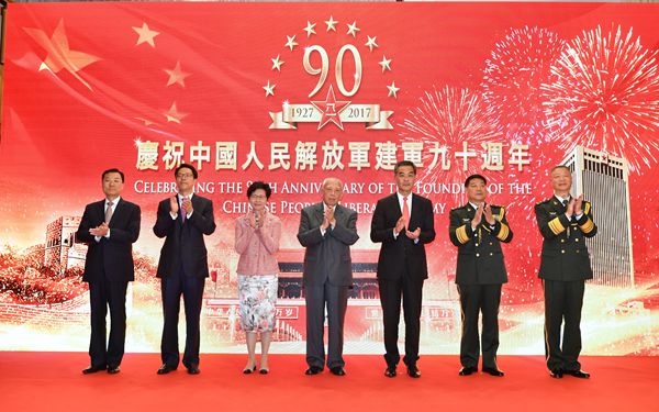 【香港商報网訊】記者馮煒強報道:解放軍駐港部隊昨晚在中環軍營舉行「慶祝中國人民解放軍建軍九十週年」招待會,全國政協副主席董建華、梁振英,行政長官林鄭月娥,中聯辦主任張曉明,解放軍駐港部隊司令員譚本宏、政委岳世鑫,外交部駐港特派員公署特派員謝鋒以及本港政商界名人共計300餘人出席。譚本宏致辭稱,20年來,駐軍認真落實「一國兩制」方針和基本法、駐軍法,展示威武之師、文明之師、愛民之師形象,贏得廣大香港市民高度贊譽。