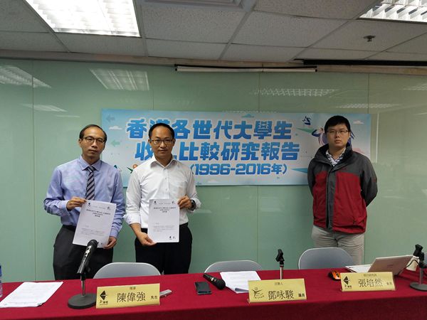 新論壇及新青年論壇昨日發表香港各世代大學生收入比較研究報告,是第3年進行相關研究。研究將1996年至2016年的大學畢業生,以每5年一個世代作比較。即1967年至1971年出生為第一代,1972年至1976年出生為第二代,如此類推,1992年至1996年為第六代。研究發現大學生比例持續上升,至第5代已有逾半人擁有大學學歷。