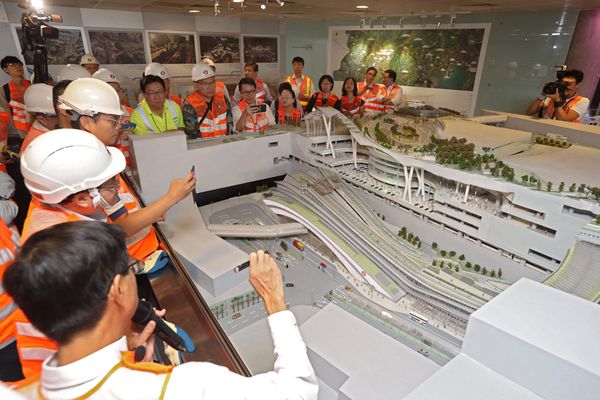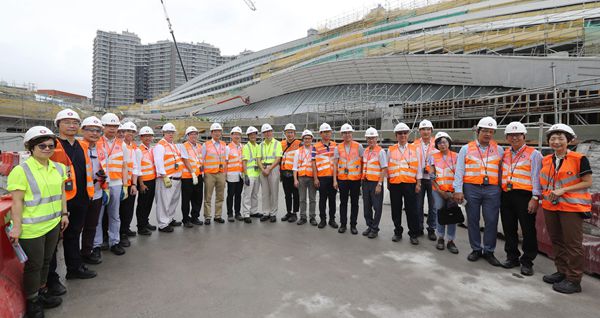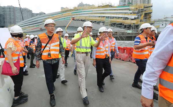 港鐵主席馬時亨帶領議員參觀西九高鐵總站地盤,背景為總站正門。
