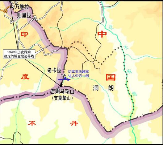 中印边界锡金段已由1890年《中英会议藏印条约》划定,是中印两国政府都确认的既定边界,这是不容否认的事实。印方所作所为违反1890年条约及其确定的中印既定边界,违反国际法基本原则和国际关系基本准则,不仅是对中国领土主权的严重侵犯,更是对地区和平稳定和正常国际秩序的严峻挑战,不会为任何一个主权国家所容忍。
