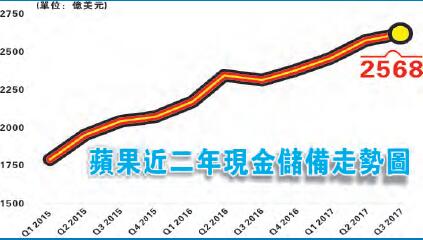 【香港商報訊】與上季的2568億美元相比,蘋果第三季度的現金儲備再度膨脹,達到創紀錄的2615億美元(約2萬億港元),同比增13%。通以往操作方式一樣,為規避美國的相關政策法規,蘋果將2615億美元現金儲備中的94%分散在全球各地,只有6%存放在美國本土。