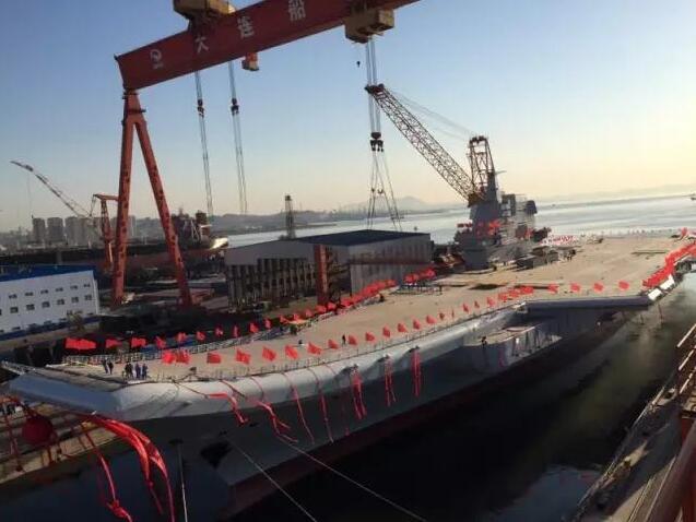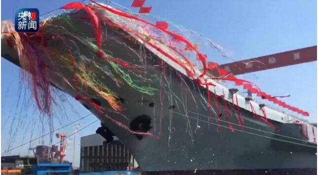 第一艘由中国完全全新建造的航空母艦,同時也是中国擁有的第二艘航空母艦,今年4月26日在大連完成下水。胡問鳴介紹,這是航母研制的重要節點之一,完成下水后,首艘國產航母依然在船廠內進行后續的設備安裝和測試工作。