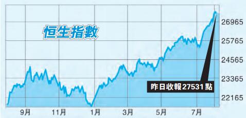 然而,當市場氣氛漸見熾熱之際,周三(2日)收市後渣打(2888)公布上半年業績雖有顯著改善,惟仍未有恢復派息的時間表,令巿場失望,股份被拋售,周四(3日)股價大跌8.07%,對市場氣氛帶來一定影響,恒指亦終止三連升,收市跌76點或0.28%,報27531點,成交亦回落至855億元。